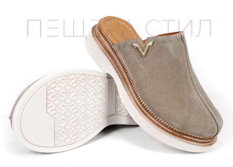 Velvet Step este un sabot dama din velur natural, culoare vizon. Modelul este deschis la spate și este destinat utilizării zilnice.