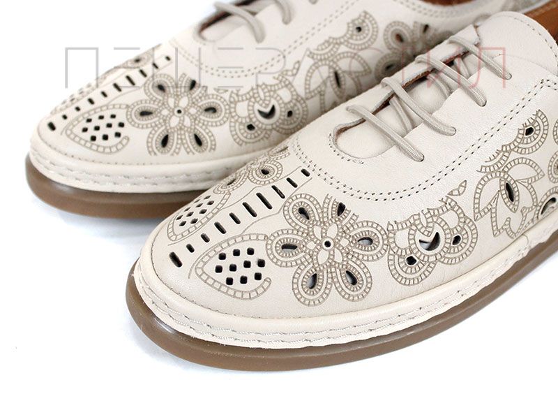 Pantofi de vară Nerisa Flow din piele naturală bej cu perforații florale elegante