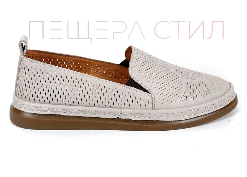 Mirela Vento sunt pantofi dama din piele naturală perforată, în nuanțe de bej și maro deschis.