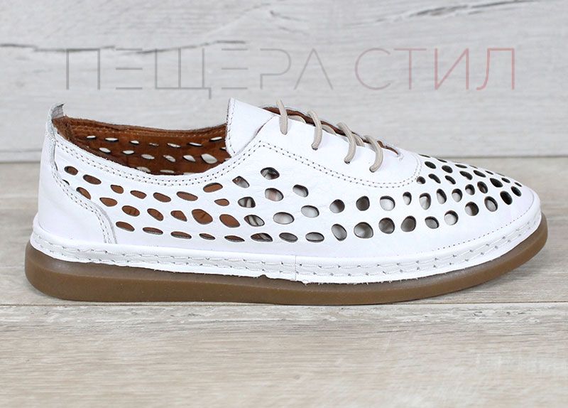 Pantofi de vară ușori din piele naturală, cu perforații mari care asigură ventilație excelentă și confort pe tot parcursul zilei. Talpa flexibilă și interiorul moale oferă o senzație plăcută la fiecare pas, iar culoarea albă adaugă un aspect curat și modern.