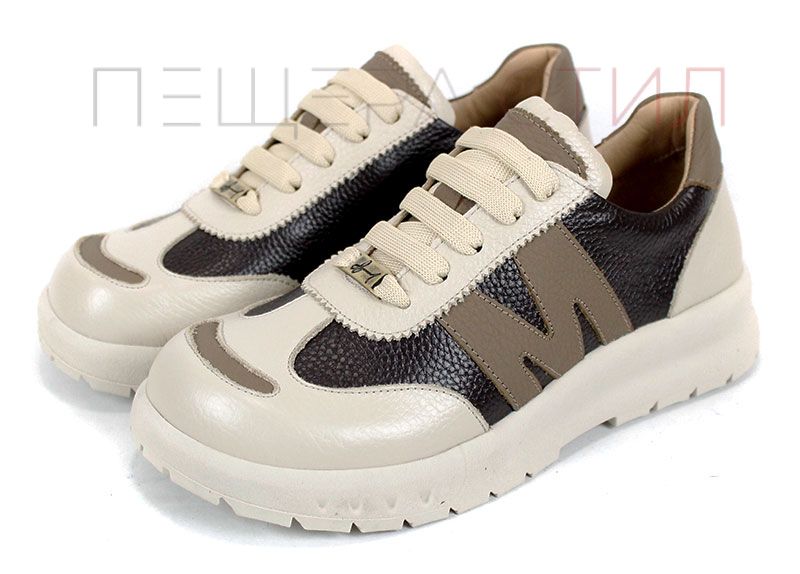 Virella Note – sneakers damă din piele naturală maro și bej