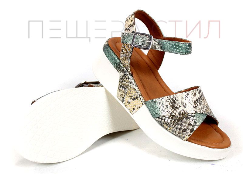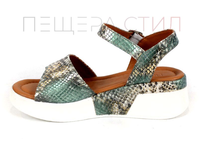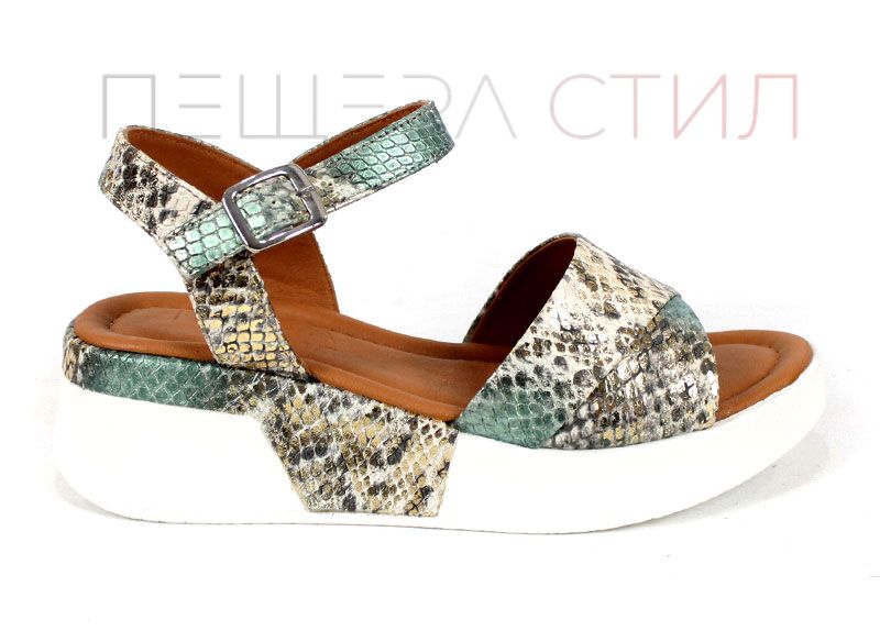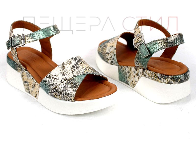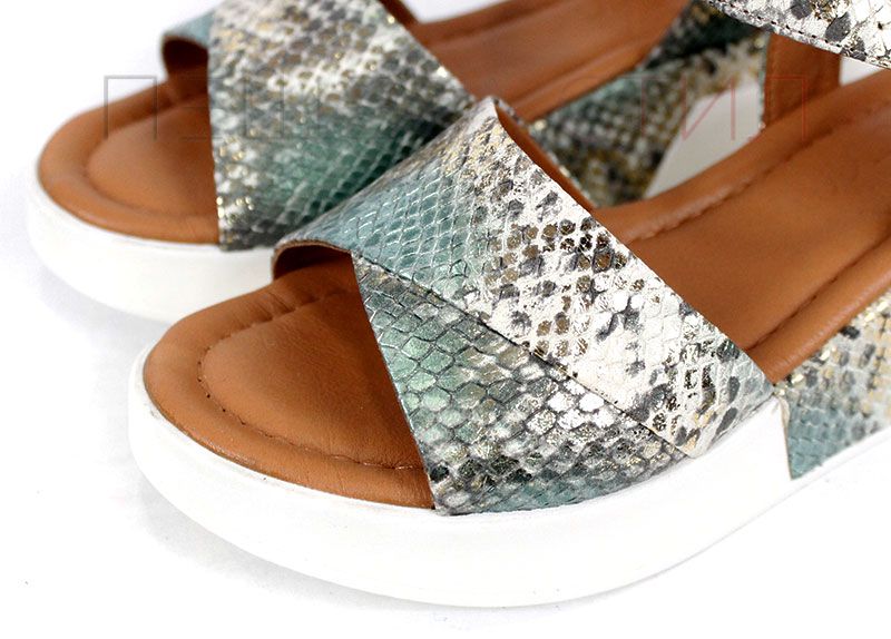Sandale dama Delora Chic din piele naturală cu imprimeu snake verde
