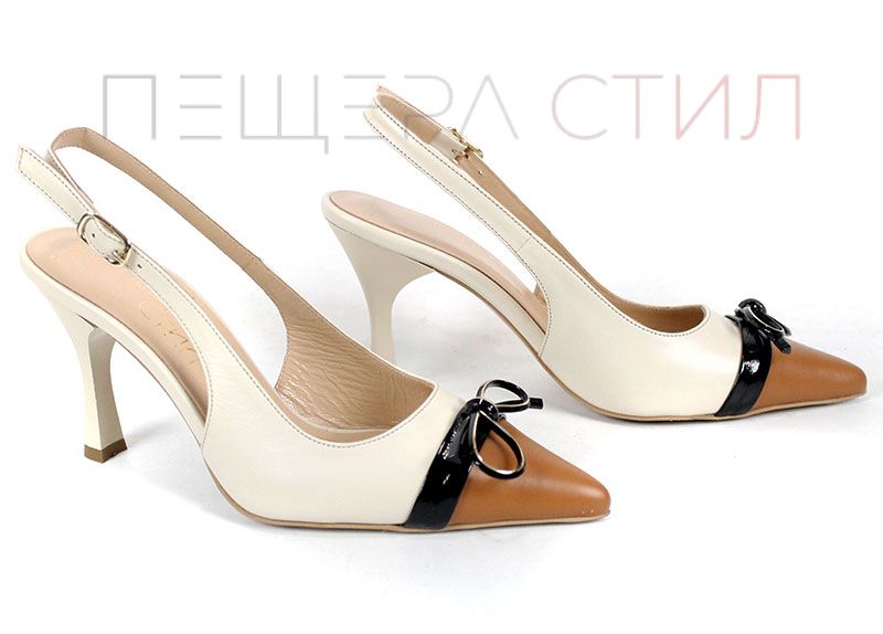 Un model feminin și rafinat, care îmbină liniile curate cu un design elegant și detalii delicate. Combinația de bej și maro oferă un aspect cald și sofisticat, iar tocul înalt subliniază silueta fără a compromite confortul – perfect pentru momentele în care vrei să impresionezi.