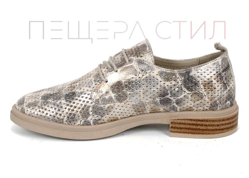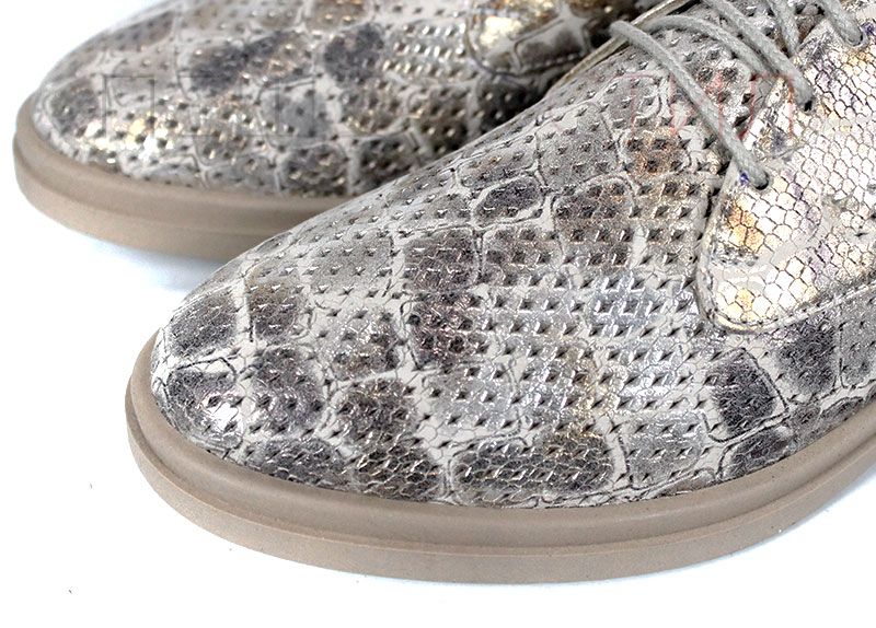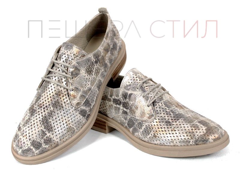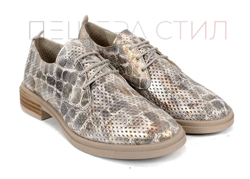 Pantofi de vară din piele naturală perforată, cu efect croco și accente aurii elegante.