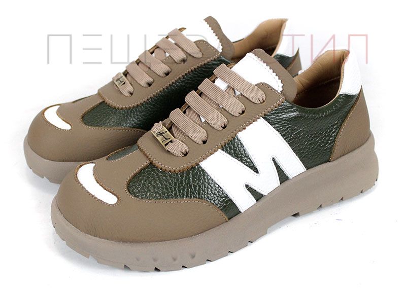 Prima pagină PANTOFI DE DAMA Virella Note – sneakerși damă din piele naturală verde și bej