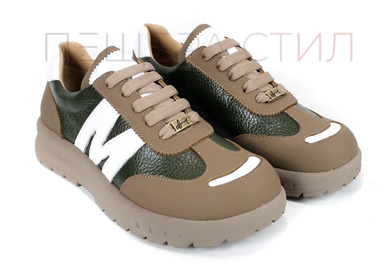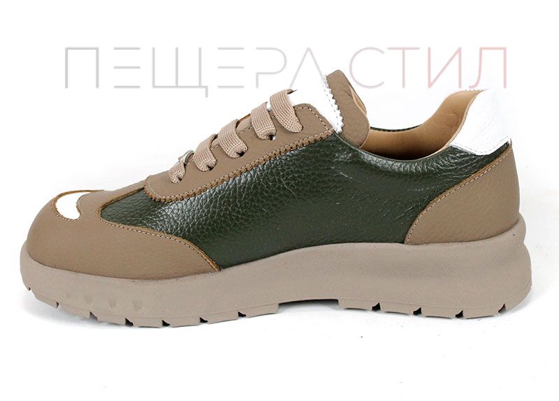 Virella Note – sneakerși damă din piele naturală verde și bej