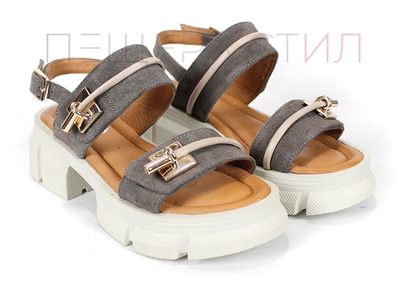 Aveline Lux – sandale damă din piele velur în culoare taupe cu talpă groasă